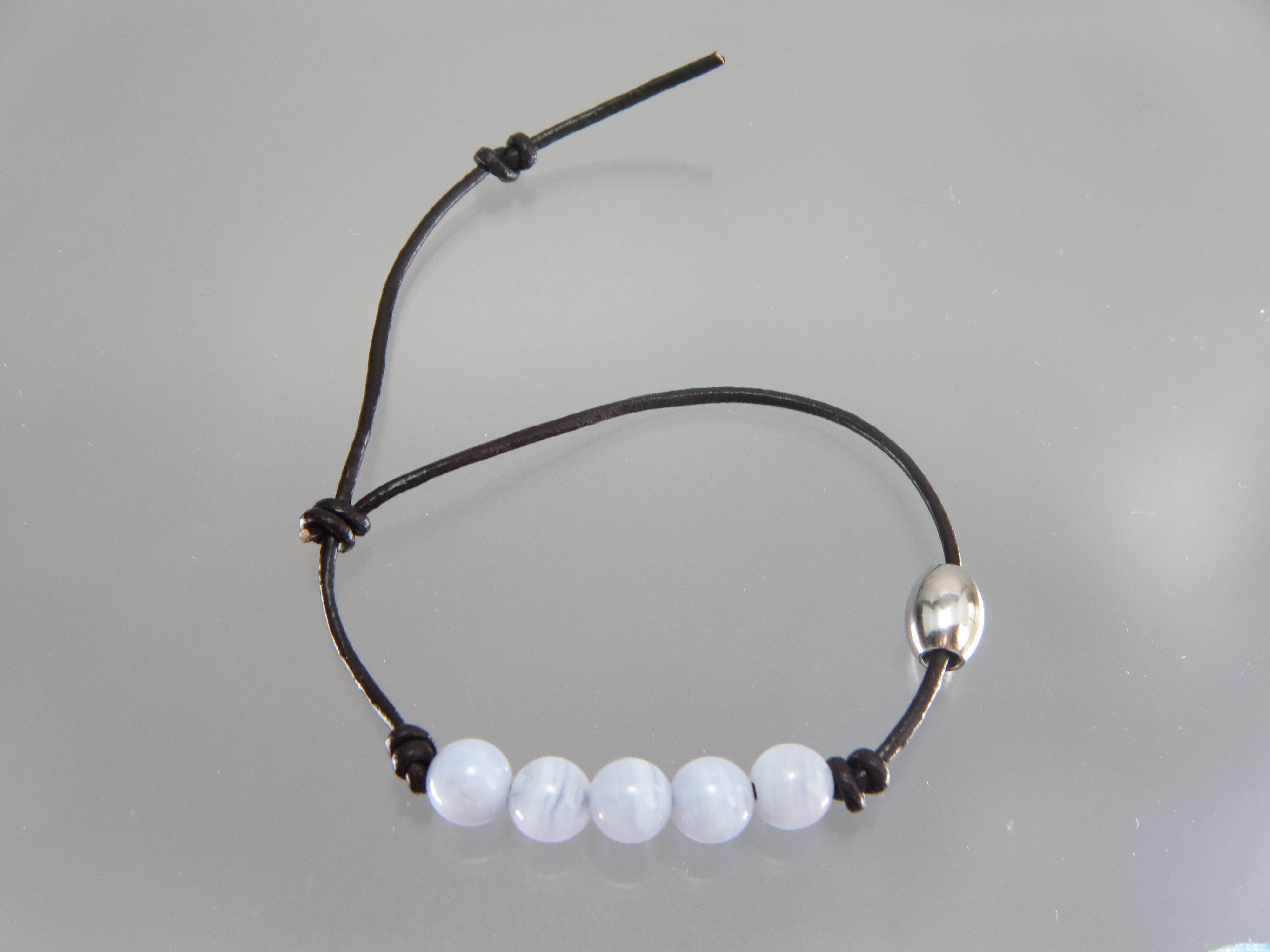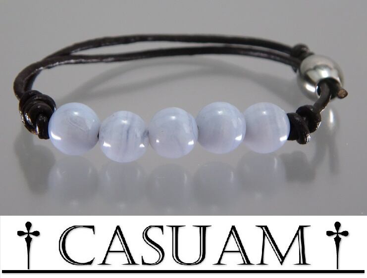8mm 14〜3.5cm 天然石・レザーコード ブレスレット 天然石 パワーストーン ついイライラしてしまう時 ◆友情の石・ブルーレース◆ レザーブレス アクセサリー ブレスレット